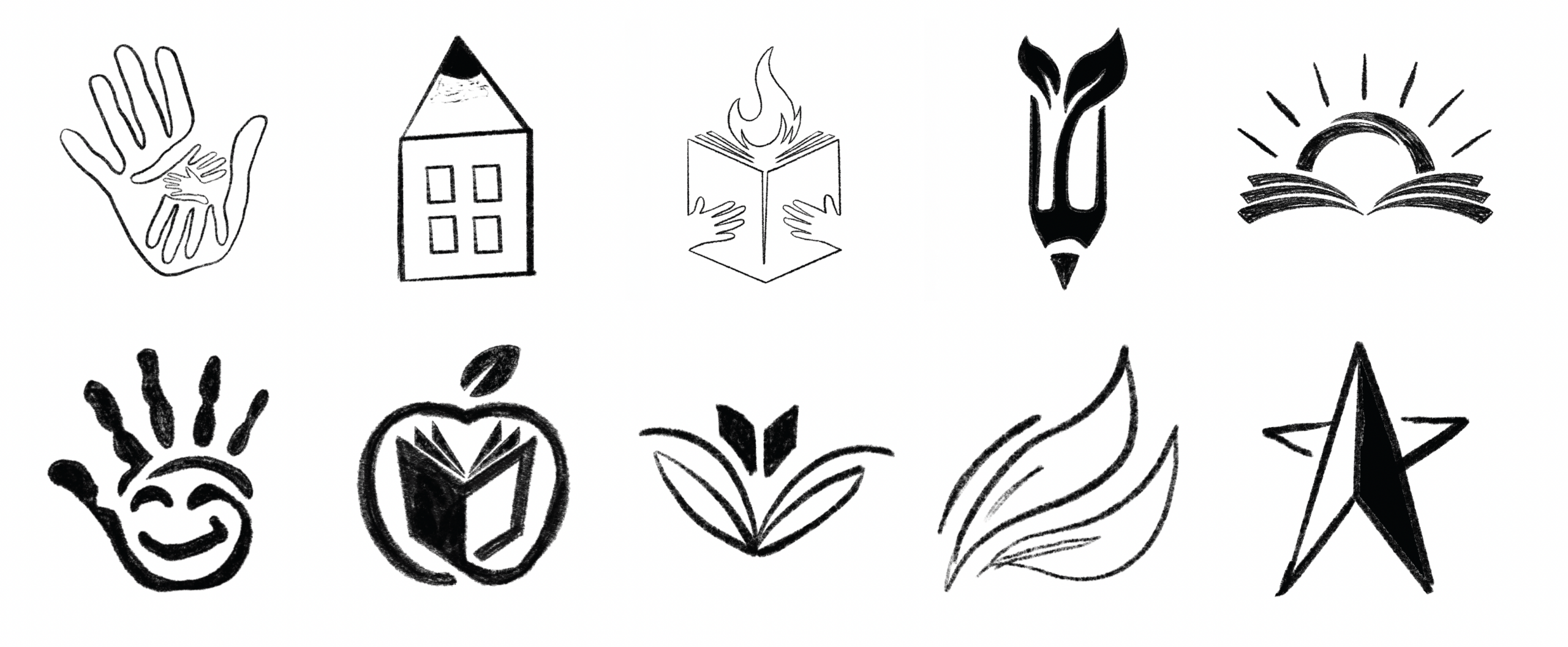 Early sketching focused on exploring symbols related to learning, growth, and discovery. Concepts included hands, books, nature elements, and letterform-based ideas. These sketches helped narrow down visual directions and allowed ideas to develop organically before moving into digital refinement.