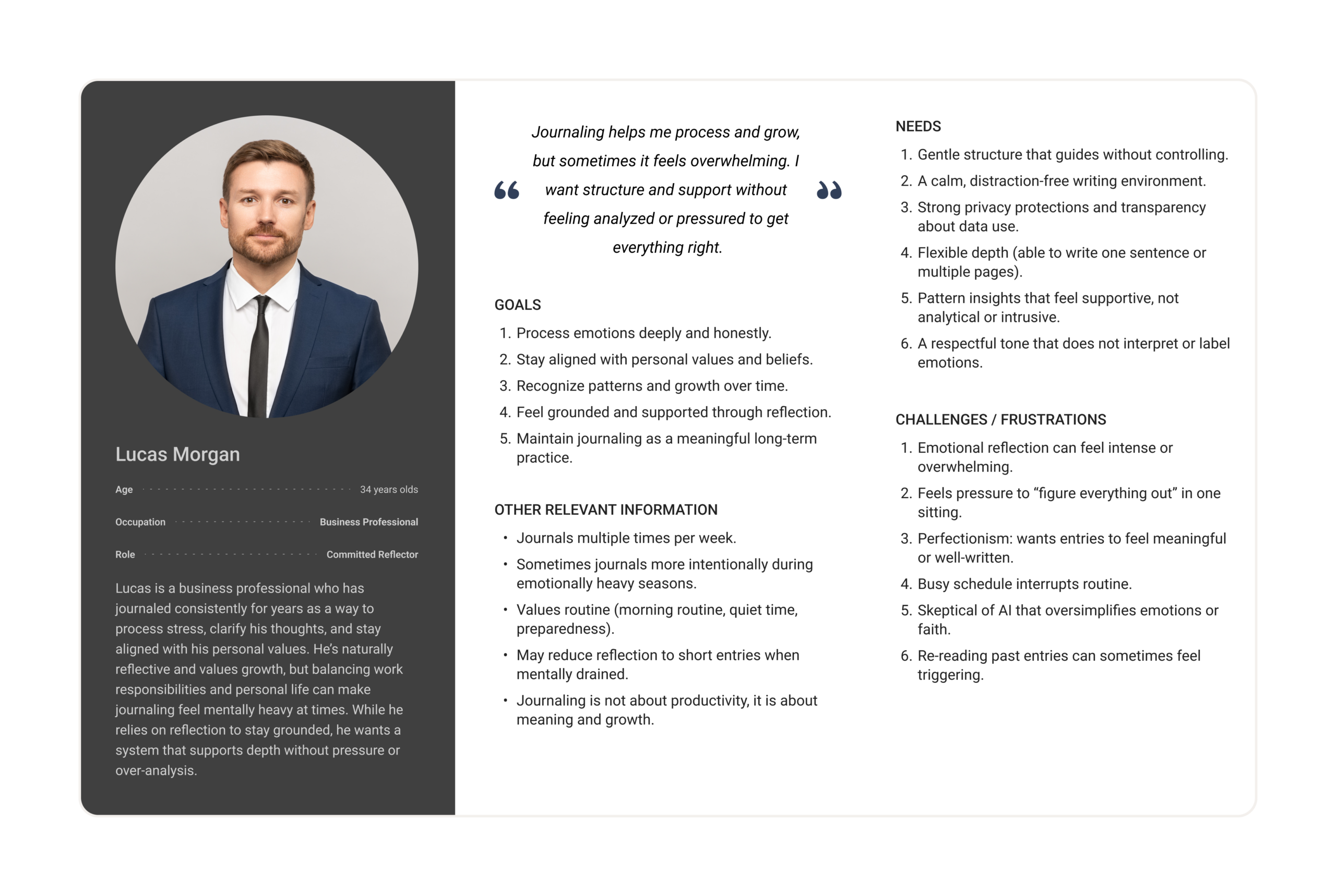 - Individuals who already journal consistently but value depth, privacy, and meaning.