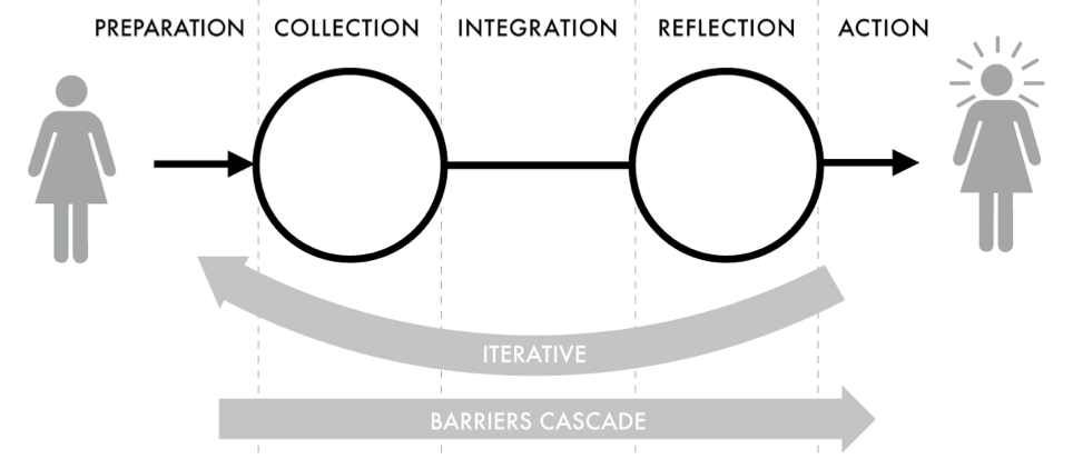 We were inspired by A Stage-Based Model of Personal Informatics Systems, which explains that reflection is not a single moment, but part of a larger process that includes Preparation, Collection, Integration, Reflection, and Action. This model also highlights that barriers in early stages often affect later ones, and that the process is iterative rather than linear.