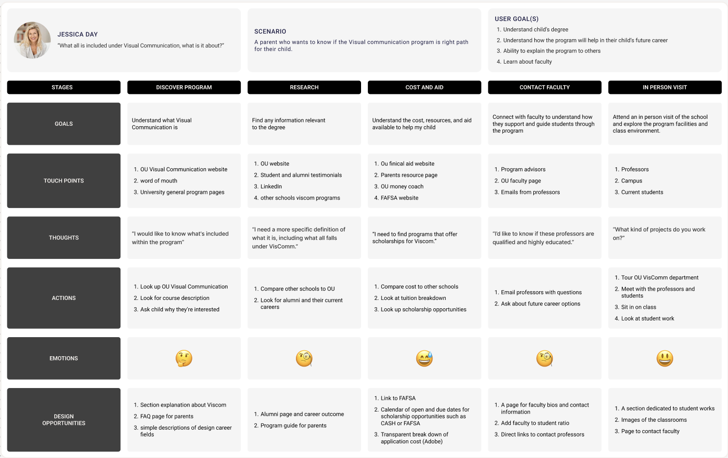 Based on the findings from the user interview data, each one of us created 3 personas journey maps for student, professor and parents.